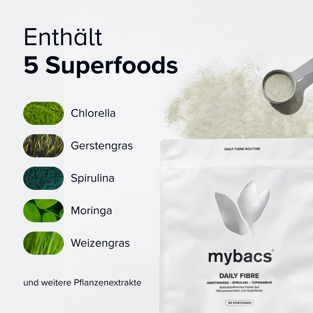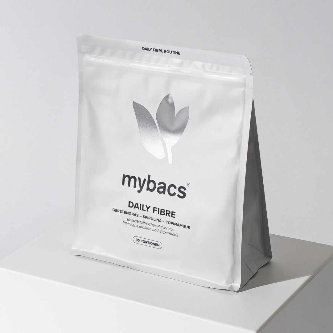 Für optimale Ergebnisse empfehlen wir die Einnahme in Kombination mit mybacs® Bakterienkulturen. Das Pulver kann aber auch problemlos alleine und zu einem anderen Zeitpunkt eingenommen werden.